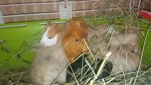 Крошечные малыши,спокойная мама-свинка и много много сена