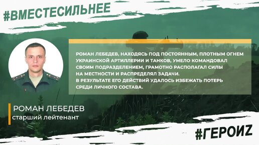 #ГероиZ: старший лейтенант Роман Лебедев удержал высоту и уничтожил противника