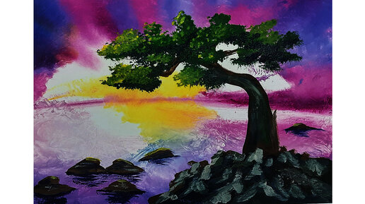 Как нарисовать необычный пейзаж. Рисуем дерево. Правополушарное рисование. Необыкновенный способ рисования.