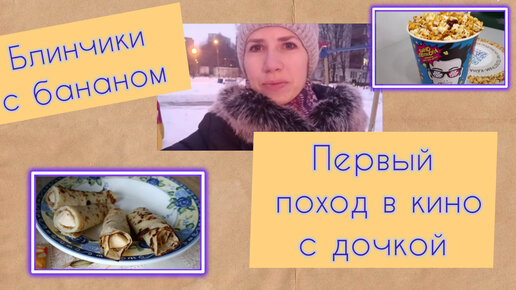 Новое любимое блюдо-блинчики с бананами. Сходили с дочкой первый раз в кино на "Чебурашку".