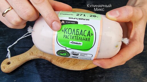 Нашла во ВкусВилле растительную колбасу "Оливье" (показываю, как выглядит внутри и как на вкус, а ещё даю на пробу коту)