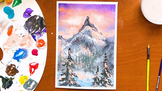 Как нарисовать горный пейзаж мастихином. Рисуем акриловыми красками на холсте