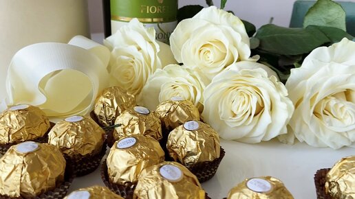 Букет с конфетами Ferrero Rocher, шампанским и цветами!