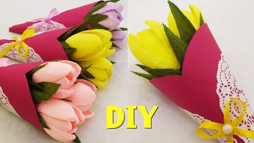 🔥МИЛЫЕ🔥 БУКЕТИКИ С ТЮЛЬПАНАМИ🔥 ПОДАРОК К 8 МАРТА СВОИМИ РУКАМИ. Бесплатный мастер класс.