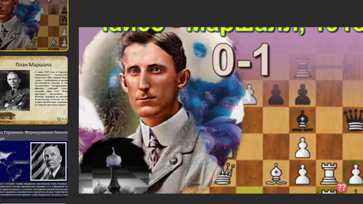Фрэнк Маршалл (черные) ничуть не боится мнимых атак Оскара Чайеса в Нью-Йорке, 1918 - ставит мат сам на 25 ходу "гипслис-скандинавки", 0-1