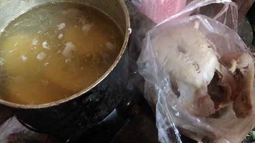 Варю суп с целой тушкой курочки. Курочку сваренную вынул, ложу в суп нарезанные овощи