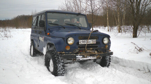 НИВЫ и Mitsubishi Pajero летят по сугробам, а УАЗ пытается ехать хоть как то