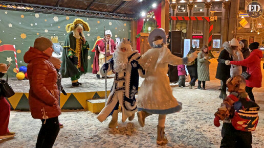 Дед Мороз и Снегурочка зажигают в танцах, детей катает «волшебный» паровоз, а в домик Деда Мороза выстраивается очередь – Новый год в СПб