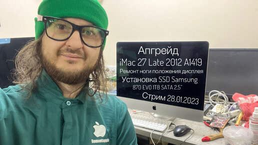 Апгрейд iMac 27 Late 2012 A1419 ремонт ноги положения дисплея SSD Samsung 870 EVO стрим 28.01.2023