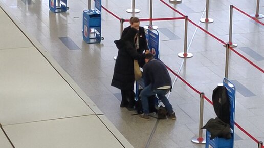 Видео из аэропорта Внуково в Москве. Запаковка ручной клади в калибратор для авиакомпании Победа. Лайфхак для тех, кто провозит ручную кладь