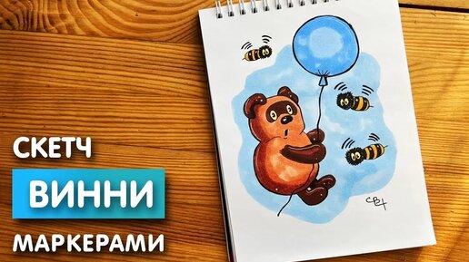 Рисунок скетч маркерами "Винни пух" для скетчбука | Срисовка картинки поэтапно для начинающих