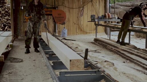 Реальная работа на ленточной пилораме и кромкообрезном станке «ТРИУМФ»