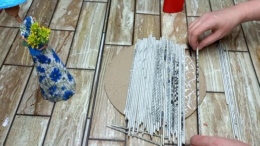 Панно своими руками из газетных трубочек и искусственных цветов.