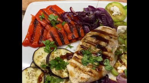 Сытный и вкусный диетический ужин. Грудка с овощами на гриле.