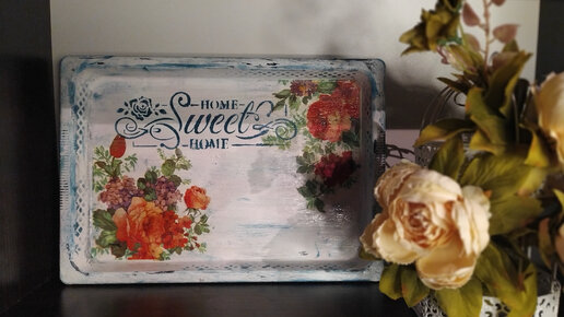 Показываю как просто в технике декупаж декорировать поднос своими руками. Невзрачный пластиковый поднос стал "винтажным" украшением кухни