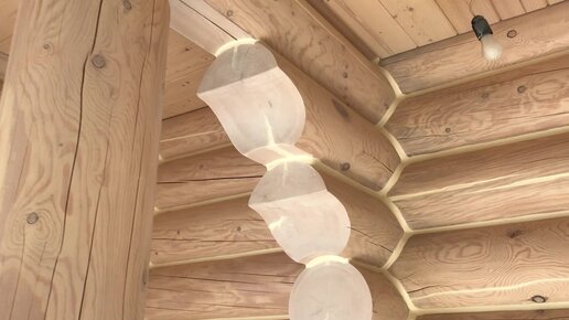 Теплый шов внутри дома, светлый стены подчеркнули текстуру дерева