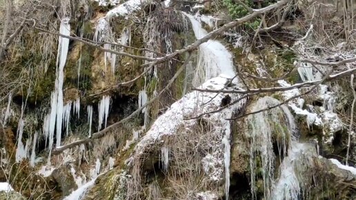 Водопад Су Учхан в сосульках, Крым 2023 засыпает снегом
