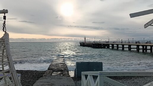 Адлер, февраль 2023, немного распогодилось, но все равно ветрено и холодно, море немного штормит... Пляж "Чайка".