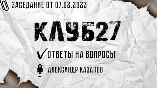 Девятое заседание «Клуба 27» от 7.02.2023. Часть 2.