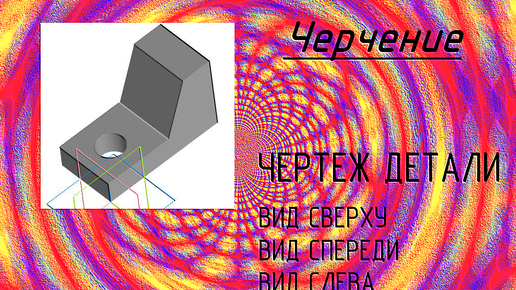 Чертеж детали. Вид сверху, вид спереди, вид слева