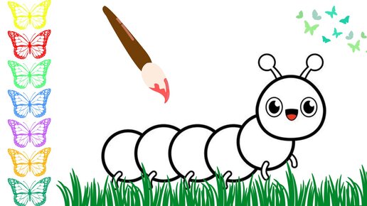РИСУЕМ ГУСЕНИЦУ. КАК РИСОВАТЬ ГУСЕНИЦУ. Рисование акварелью. Рисование для детей и малышей