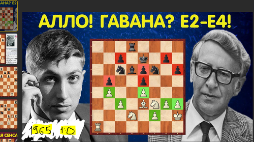 Василий Смыслов играет черными в Гаване, против Бобби Фишера: проиграл наш человек, но достойно выступил в "испанке" (Куба, 1965, 1-0)