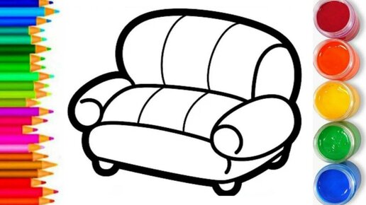 Чертеж, раскраска и раскраска диванной мебели для детей, малышей | Как рисовать легко.