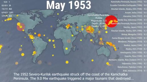 Крупнейшие землетрясения в мировой истории - Временной интервал на карте