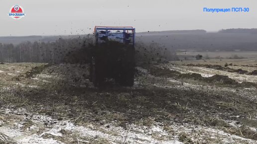 Навозоразбрасыватель на полуприцепе ПСП-30 Ярославич. Внесение органических удобрений. Разбрасывание навоза.