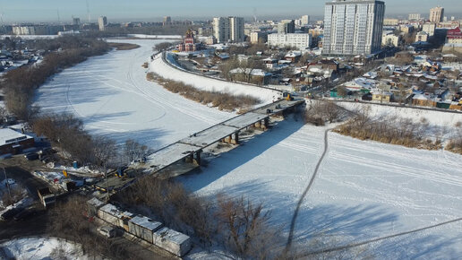Завершающие работы на Кировском мосту в Кургане (2023-02-09)