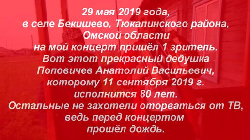 "ОТ ЛЮДЕЙ НА ДЕРЕВНЕ НЕ СПРЯТАТЬСЯ для самого преданного жителя гармони села Бекишево, Омской области. 2019 год.