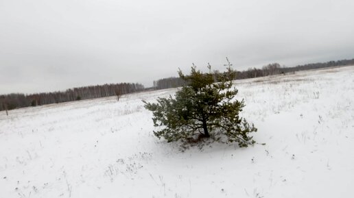 Русский матерный рэп в заснеженном поле среди редких маленьких сосен