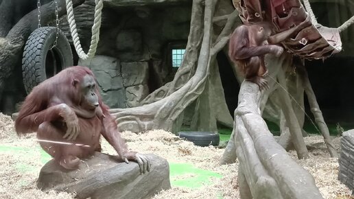 Из жизни борнейских орангутанов в Московском зоопарке.