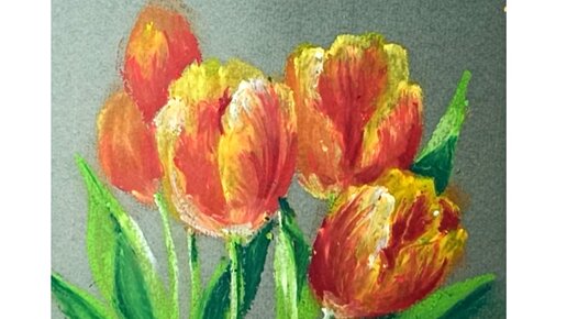 🌷🌷🌷Пламенные тюльпаны. Рисунок масляной пастелью на тонированной бумаге. 🌿😊🌿