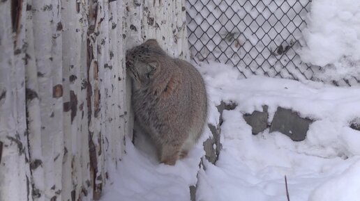 Манул Ева подсматривает за Жорой. 08.02.2023