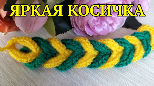 Садитесь поудобнее, мы начинаем. Яркая косичка, обвязка для шапочки!