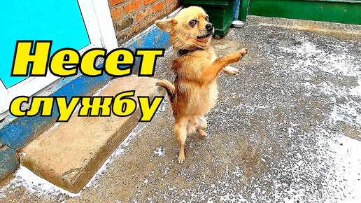 Маленькая собачка несет службу.