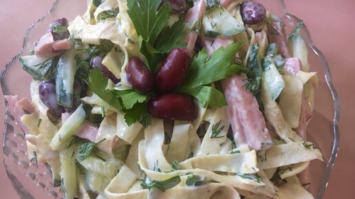 Салат с колбасой и фасолью. Быстрый рецепт из доступных ингредиентов
