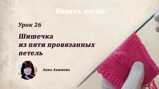 Урок 26: Шишечки спицами: из 5-ти провязанных петель. Объемные узоры спицами.