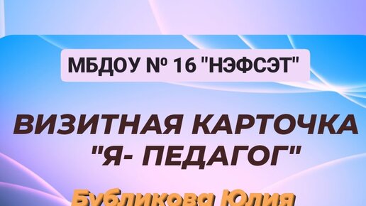 Визитная карточка "Я - Педагог" МБДОУ N⁰16 "НЭФСЭТ" Воспитатель Бубликова Юлия Сергеевна