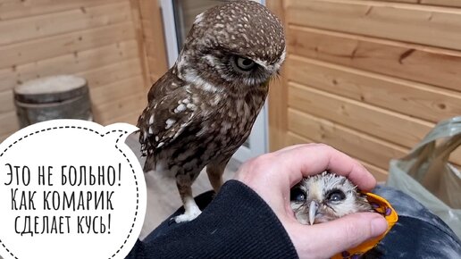 Домовый сыч Лучик помогает лечить мохноногого сыча Чучундрия. Много лекарств для маленькой совы