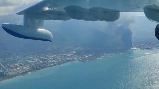 Самолет-амфибия Бе-200 МЧС России тушит пожар в порту Искендеруна