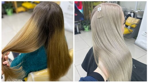 Тотальный блонд, холодный перламутровый оттенок. Как осветлить сильно отросший корень и рыжую длину. Обесцвечивание темных волос