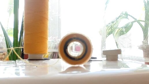 Наматываю на шпульку жёлтые нитки. Будет жёлтое полотенце!