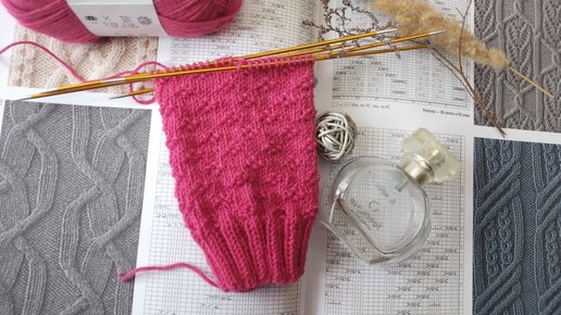 С этим узором носочки получатся великолепными. Узор из лицевых и изнаночных петель. Простой и красивый узор для кругового вязания.