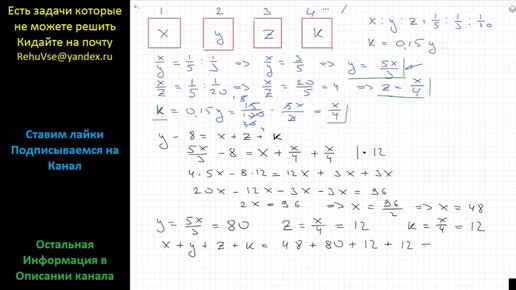 Математика Ученик читал книгу 4 дня. Число страниц, прочитанных им в первые три дня, относятся как 1/5 : 1/3 : 1/20. В четвертый день он
