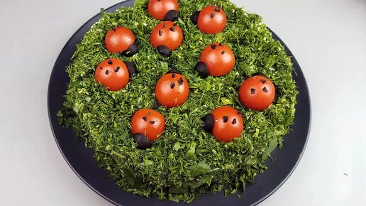 Салат за СЧИТАННЫЕ минуты!!Как ЛЕГКО Украсить Салат/Божья коровка/Салаты рецепты