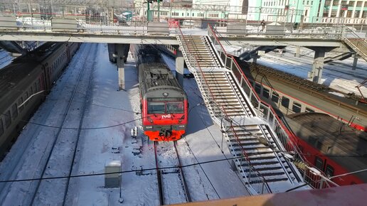 Электропоезд ЭД4М-0419 "Кузнецкий Экспресс" отправляется со станции Новосибирск-Главный