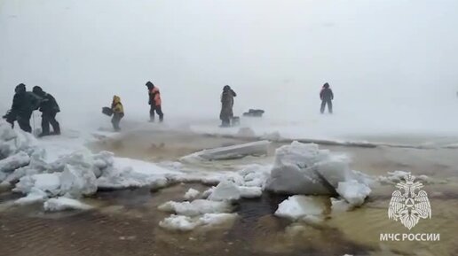 Видео спасения петербургских рыбаков на льдине во время шторма