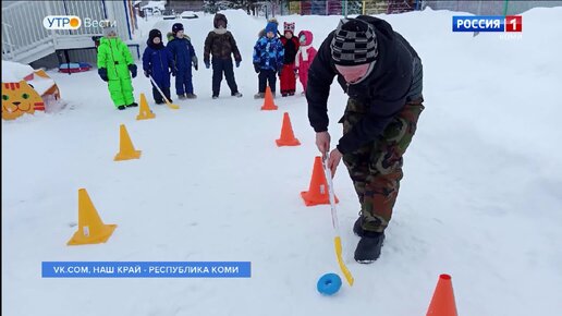 В селе Щельябож воспитанники детсада учатся играть в хоккей